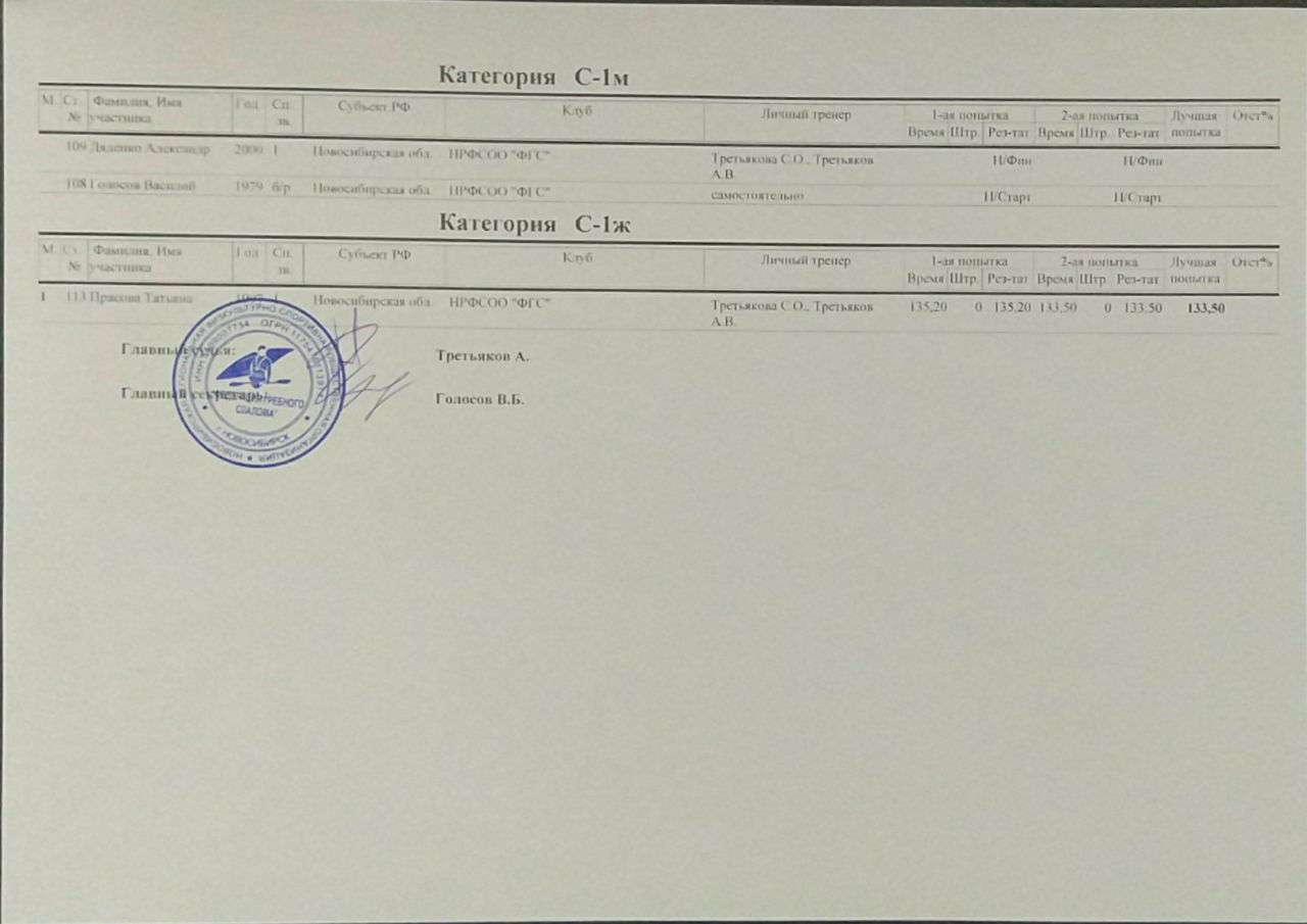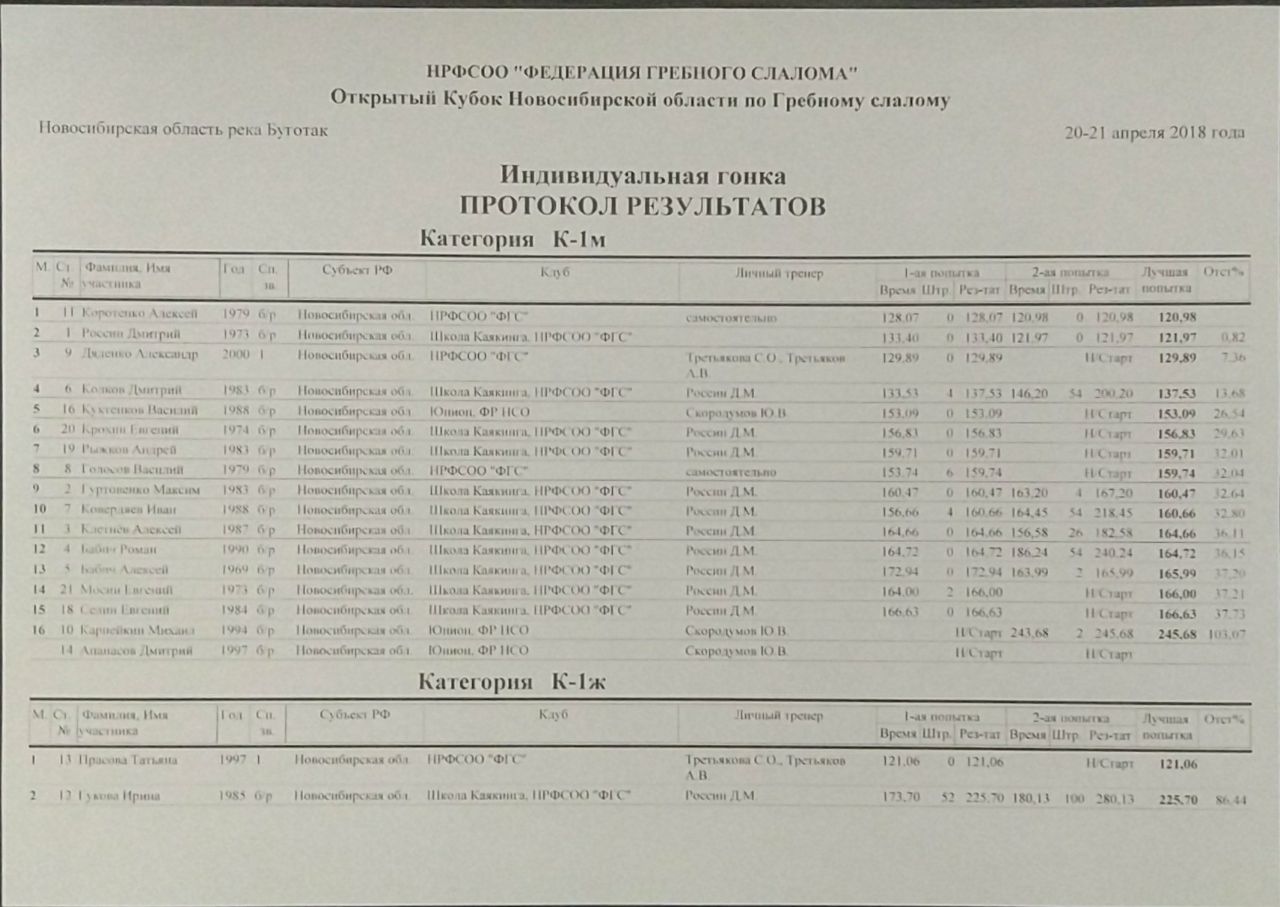 ПРОТОКОЛ РЕЗУЛЬТАТОВ Индивидуальная гонка 1