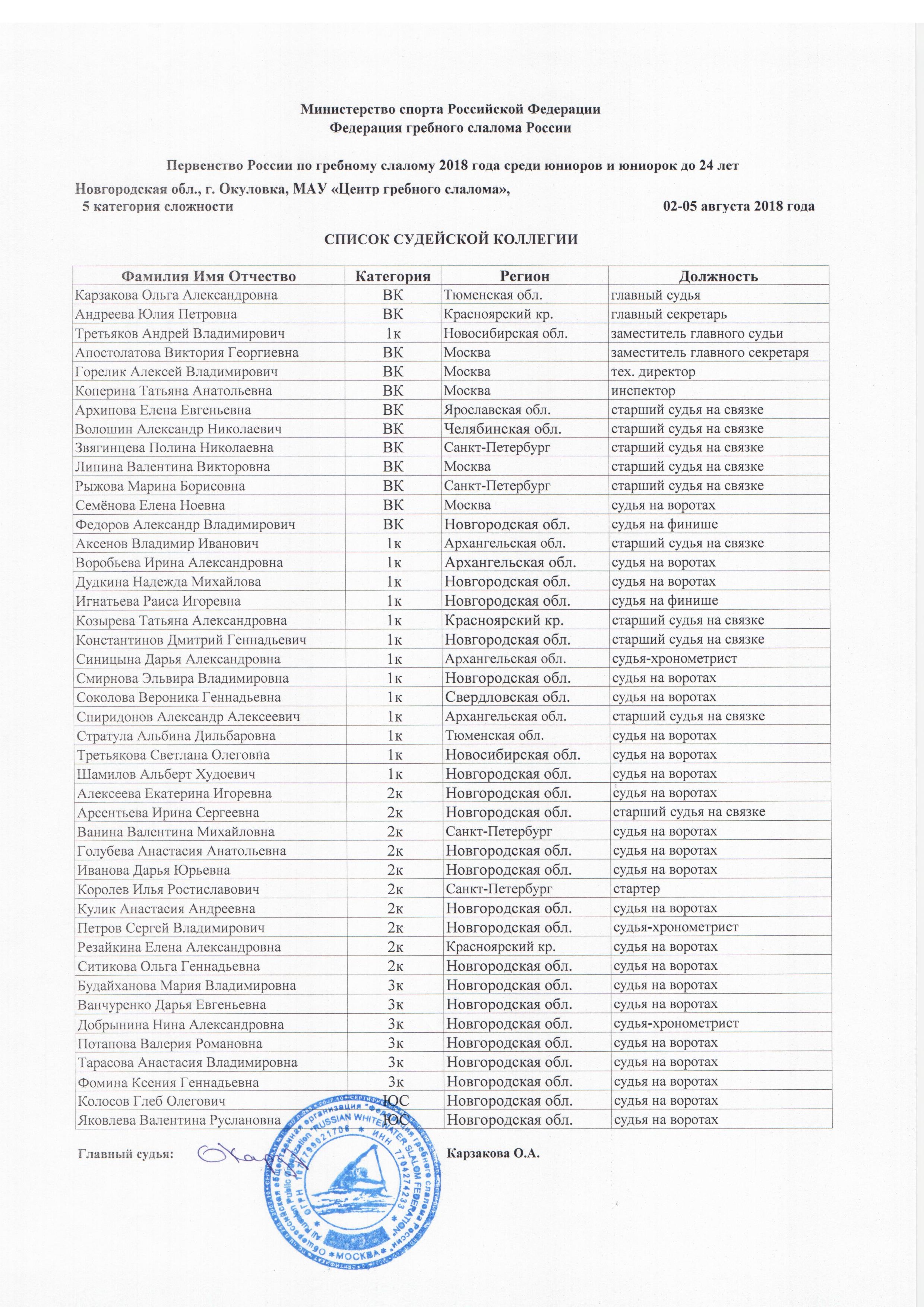 Список судей всероссийской категории