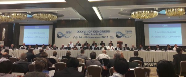 На минувшей неделе в Баку (Азербайджан) завершился очередной конгресс Международной федерации каноэ (ICF), на которым основным вопросом повестки дня стали выборы на должности структуры управления организации. За день до его начала состоялся внеочередной конгресс для рассмотрения вопроса новой структуры правления Федерации. По итогам голосования была скорректирована структура исполнительного комитета, а также совет директоров ICF.